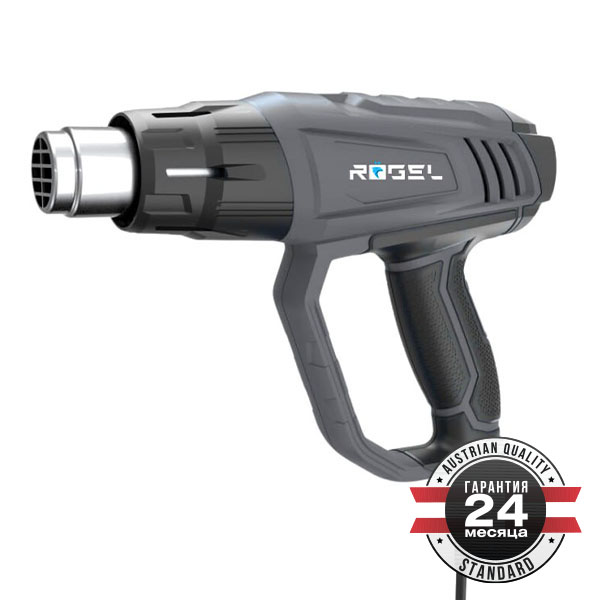 Фен технический RÖGEL, 2000 Вт, 3 режима, 500-300-500 л/мин, 60-350-600 градусов, набор насадок