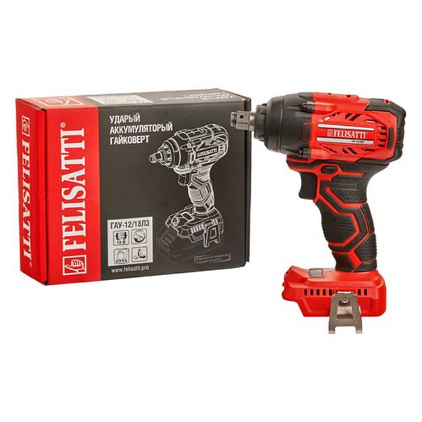 Аккумуляторным ударным гайковертом Felisatti ГАУ-12/18Л3 можно легко и быстро отвинчивать болты и гайки (даже если их покрывает ржавчина), закрепить какие-либо детали из дерева, металла или пластика. Гайковерт оснащен инновационным бесщеточным двигателем, развивающим, по сравнению с щеточными двигателями, больший момент и обладающего повышенной экономичностью в энергопотреблении. Бесщеточный двигатель имеет маркировку GLMY 4815-000033S. Такой мотор имеет более высокий КПД, служит дольше, не требует замены щёток, а также может работать в непосредственной близости от огнеопасных предметов, поскольку у него нет искрения между щетками и коллектором. Может показаться, что если у вас есть хорошая дрель-шуруповерт, то можно обойтись и без ударного гайковерта. Это неверно. На сегодня шуруповерты имеют максимальный момент затяжки 35 - 60 Нм. Сравните: максимальный крутящий момент у Felisatti ГАУ-12/18Л3 составляет 320 Нм. Такая сила позволяет не только снимать сильно окислившиеся или туго затянутые гайки, но и без труда закручивать длинные шурупы по дереву (их еще называют «глухари»). Гайковерт совместим с аккумуляторами новой универсальной силовой платформы аккумуляторного инструмента UPP. Аккумуляторы платформы UPP могут быть установлены на различных аккумуляторных инструментах, совместимых с платформой UPP. Таким образом, при покупке этих моделей, вам не придется покупать к ним отдельный аккумулятор, и вы сможете сэкономить до 70 % средств. В линейке аккумуляторов платформы UPP имеются модели повышенной ёмкости: 3,0 Ач и 4,0 Ач. Если у вас уже имеется другой аккумуляторный инструмент на платформе UPP, вы можете использовать зарядное устройство и аккумулятор от этого инструмента совместно с этим гайковертом. Если нет – можете приобрести аккумуляторы и зарядное устройство отдельно. Слайдерное крепление батареи обеспечивает удобное сцепление батареи с корпусом инструмента и надежный контакт электрического соединения;