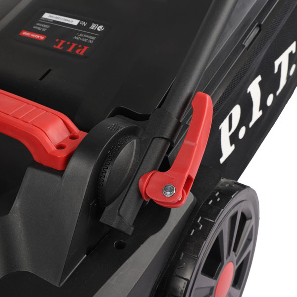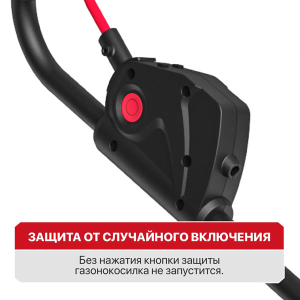 - Складная рукоятка позволяет удобнее хранить и перевозить газонокосилку