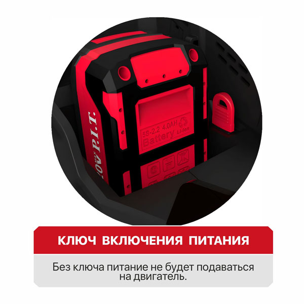 - Повышенная производительность за счет напряжения 40 В благодаря использованию 2 аккумуляторов