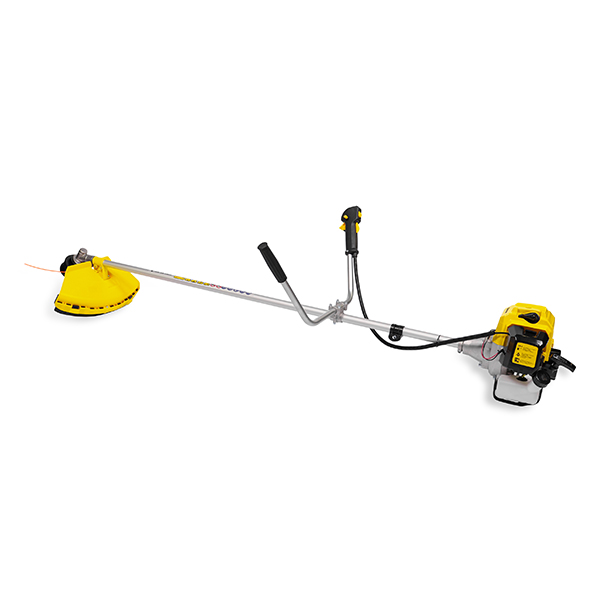 Корпус двигателя выполнен из специального ударопрочного пластика и защищает от внешних механических воздействий. Широкий защитный кожух защищает оператора от выброса травы, камней и других вылетающих из-под режущего инструмента предметов. Два поршневых кольца создают стабильную компрессию, увеличивают срок службы цилиндро-поршневой группы. Топливный бак имеет полупрозрачные стенки для удобства контроля за уровнем топлива. Надёжная полуавтоматическая катушка обеспечивает лёгкую подачу корда. Две режущие оснастки: триммерная головка и 3-х лопастной нож. Подвесной ремень в комплекте. Праймер.