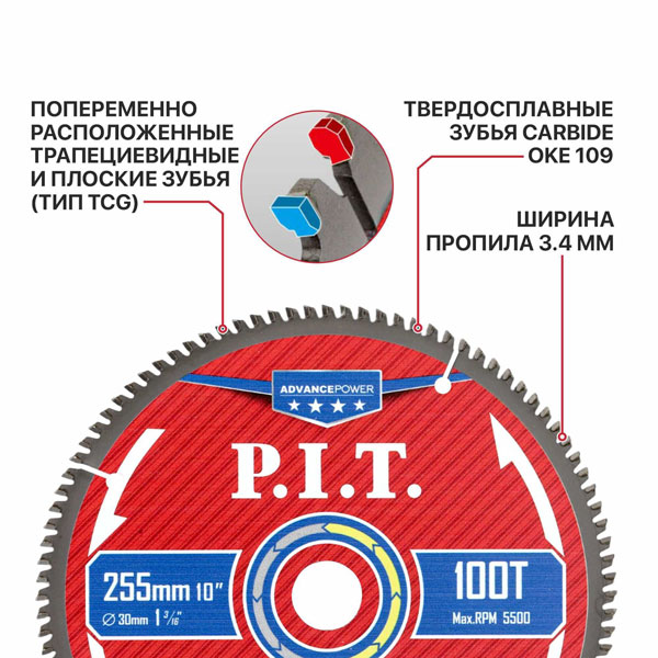 Попеременно расположенные трапециевидные и плоские зубья обеспечивают долгий срок службы и точный чистый рез: зуб в форме трапеции выполняет черновое пиление, а плоский зуб обеспечивает чистоту кромок.