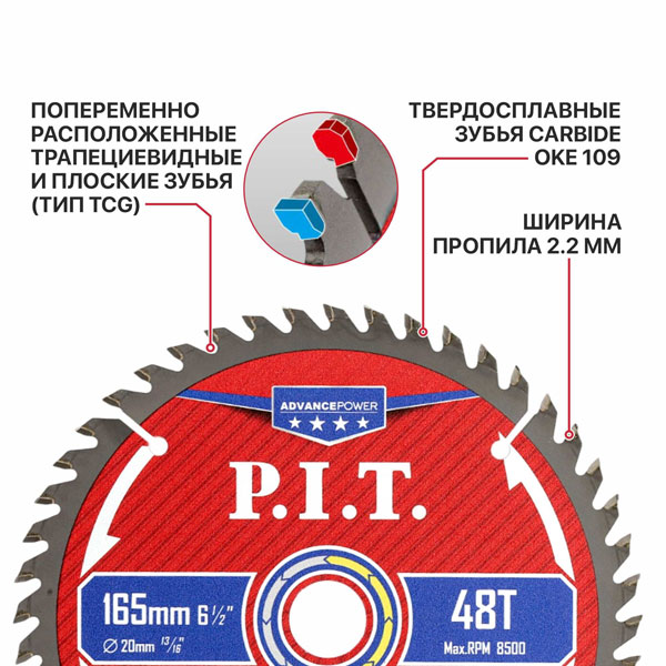 Попеременно расположенные трапециевидные и плоские зубья обеспечивают долгий срок службы и точный чистый рез: зуб в форме трапеции выполняет черновое пиление, а плоский зуб обеспечивает чистоту кромок.