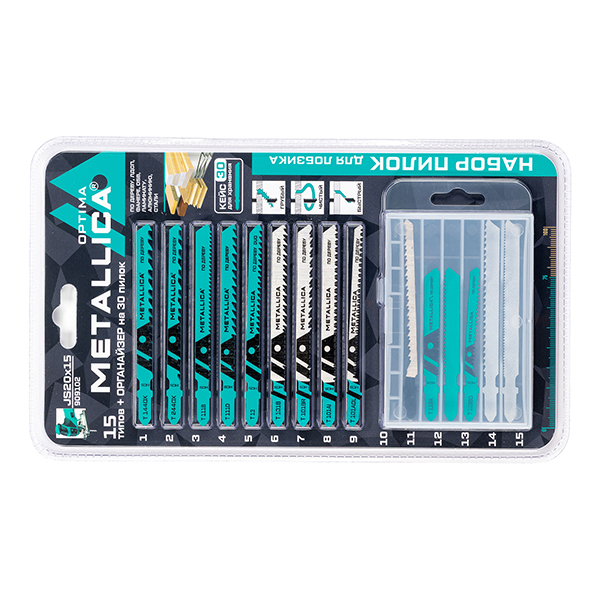 Набор пилок д/лобзика METALLICA Optima №20 комбинированный, 15 штук с боксом для хранения.