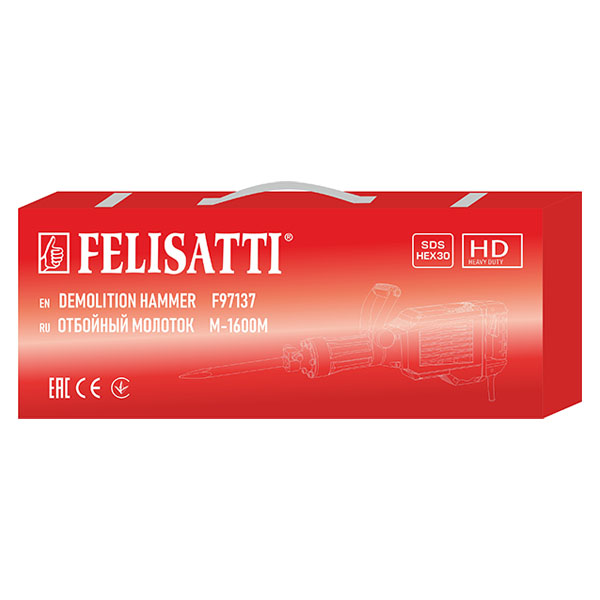 Отбойный молоток FT7702 Felisatti (М-1600М) HEX-30 — профессиональный инструмент с высокой мощностью 1600 Вт и силой удара 45 Дж, позволяющий эффективно разрушать самые прочные материалы, включая бетон, камень и асфальт. Модель оснащена системой SDS-HEX 30, обеспечивающей надёжное крепление оснастки и минимальные вибрации при работе.