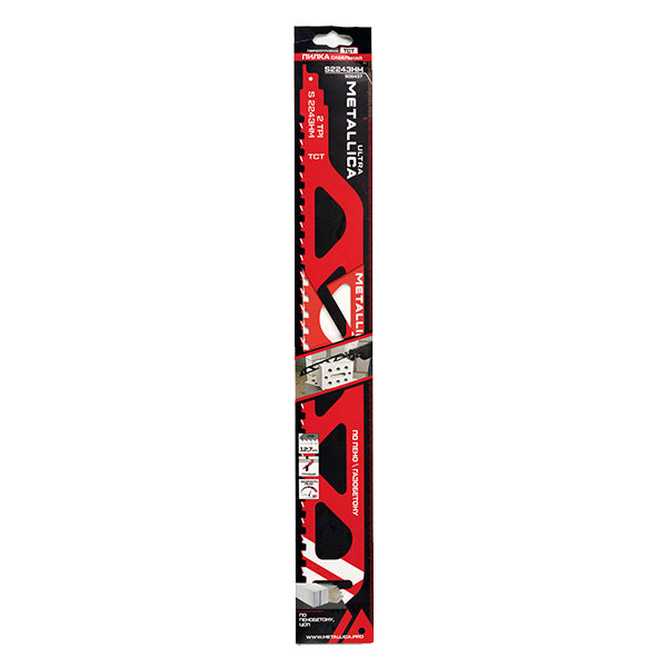 *Серия ULTRA. Мод. S2243HM. Длина общая 455 мм, рабочая 410 мм, шаг зубов 12,7 мм, толщина полотна 1,5 мм, ширина пропила 2,5 мм. Эффективная толщина пиления: пенобетон до 360 мм, дерево 50-200 мм. Упаковка: картонный подвес - 1 шт.