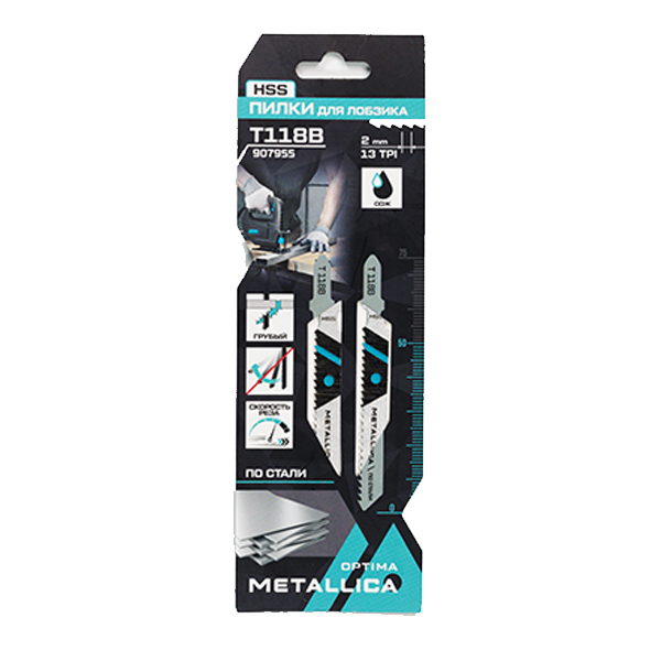 Пилки д/лобзика METALLICA Optima T118B, 75/50мм шаг 2мм, HSS прямой рез, по стали 4-7мм 2шт