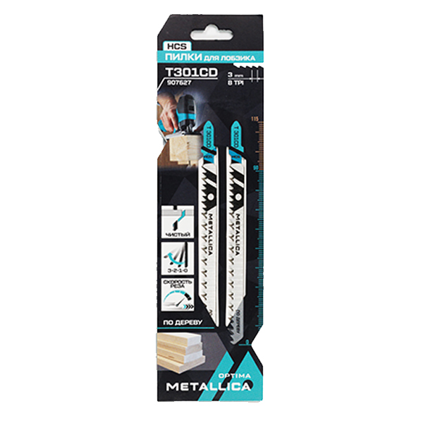 Пилки д/лобзика METALLICA Optima T301CD, 115/90мм шаг 3мм, HCS быстрый рез, по дереву 2шт