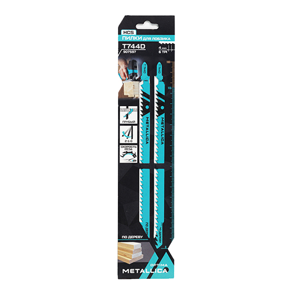 Пилки д/лобзика METALLICA Optima T744D, 180/155мм шаг 4мм, HCS грубый рез, по дереву 2шт
