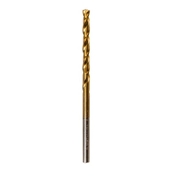 Изготовлено из быстрорежущей стали Р6М5 (HSS М2) методом прецизионного шлифования поверхности канавки алмазным кругом для снижения трения и нагрева в процессе сверления. Угол заточки при вершине 135 град. для сверления стали с пределом прочности на растяжение до 900 Н/мм2. W-заточка не требует накернивания и ускоряет сверление, разделяя стружку на 4 части. Сверло закалено до твердости 63-65HRC. Имеет цилиндрический хвостовик. Покрытие нитридом титана (TiN) для повышения износостойкости боковых поверхностей, улучшения фрикционных свойств и защиты от коррозии.