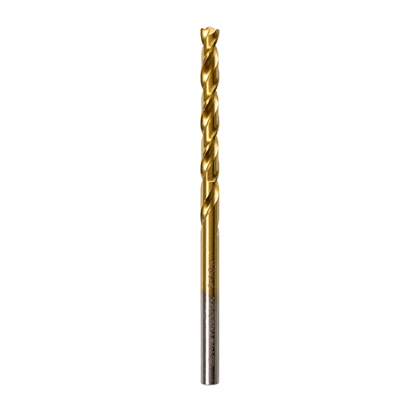 Изготовлено из быстрорежущей стали Р6М5 (HSS М2) методом прецизионного шлифования поверхности канавки алмазным кругом для снижения трения и нагрева в процессе сверления. Угол заточки при вершине 135 град. для сверления стали с пределом прочности на растяжение до 900 Н/мм2. W-заточка не требует накернивания и ускоряет сверление, разделяя стружку на 4 части. Сверло закалено до твердости 63-65HRC. Имеет цилиндрический хвостовик. Покрытие нитридом титана (TiN) для повышения износостойкости боковых поверхностей, улучшения фрикционных свойств и защиты от коррозии.
