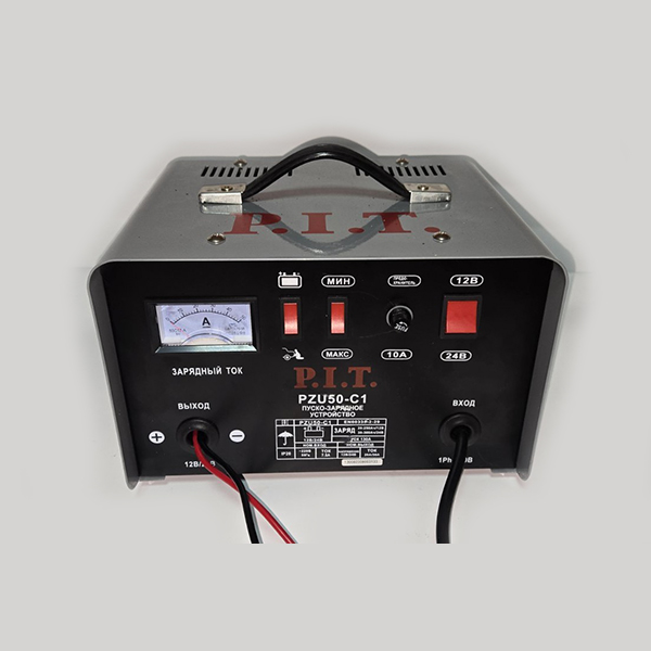 Рабочее, после восстановления, имеются незначительные потёртости на корпусе, полный комплект, в упаковке. Данный товар реализуется без гарантии, обмену или возврату не подлежит. Пуско-зарядное устройство P.I.T. PZU50-C1 предназначено для пуска и зарядки аккумуляторов со свободным электролитом. С его помощью можно запускать легковые автомобили, моторные лодки и т.д. Аппарат имеет малый вес и габариты, а также высокую скорость зарядки элементов питания. На панели управления расположены тумблеры: главный выключатель, переключатель режимов обычной зарядки или BOOST (быстрая), переключатель режима «запуск», «зарядка». Предусмотренная рукоятка в верхней части корпуса позволяет с легкостью переносить прибор с одного места на другое. С помощью амперметра возможно определение точного количества выдаваемого напряжения на аккумуляторы. Защита от перегрузки. Переключатель для выбора режима: ускоренная зарядка или нормальная. Сменный предохранитель. Защита от короткого замыкания. Металлический корпус.