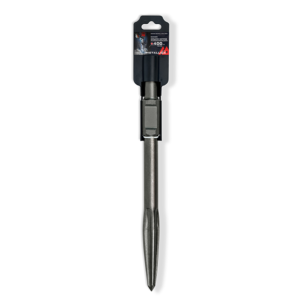Зубило пикообразное самозатачивающееся длинное предназначено для разрушения бетона, кирпича, камня тяжелыми отбойными молотками с шестигранным патроном. Изготовлено из инструментальной стали марки 40Х с закалкой ТВЧ до твердости 40-45HRC. Применяется для демонтажа больших объемов строительных конструкций, кирпичной кладки, вскрытия бетонных полов, стяжек, удаления старых фундаментов в загородном строительстве, разрушения асфальтового покрытия, разрыхления мерзлого грунта. Рабочая часть зубила специального Х-образного профиля с выраженными остроугольными гранями обладает эффектом самозатачивания - благодаря небольшому поперечному сечению и четырем ребрам жесткости не требует частой подточки для повышения производительности.